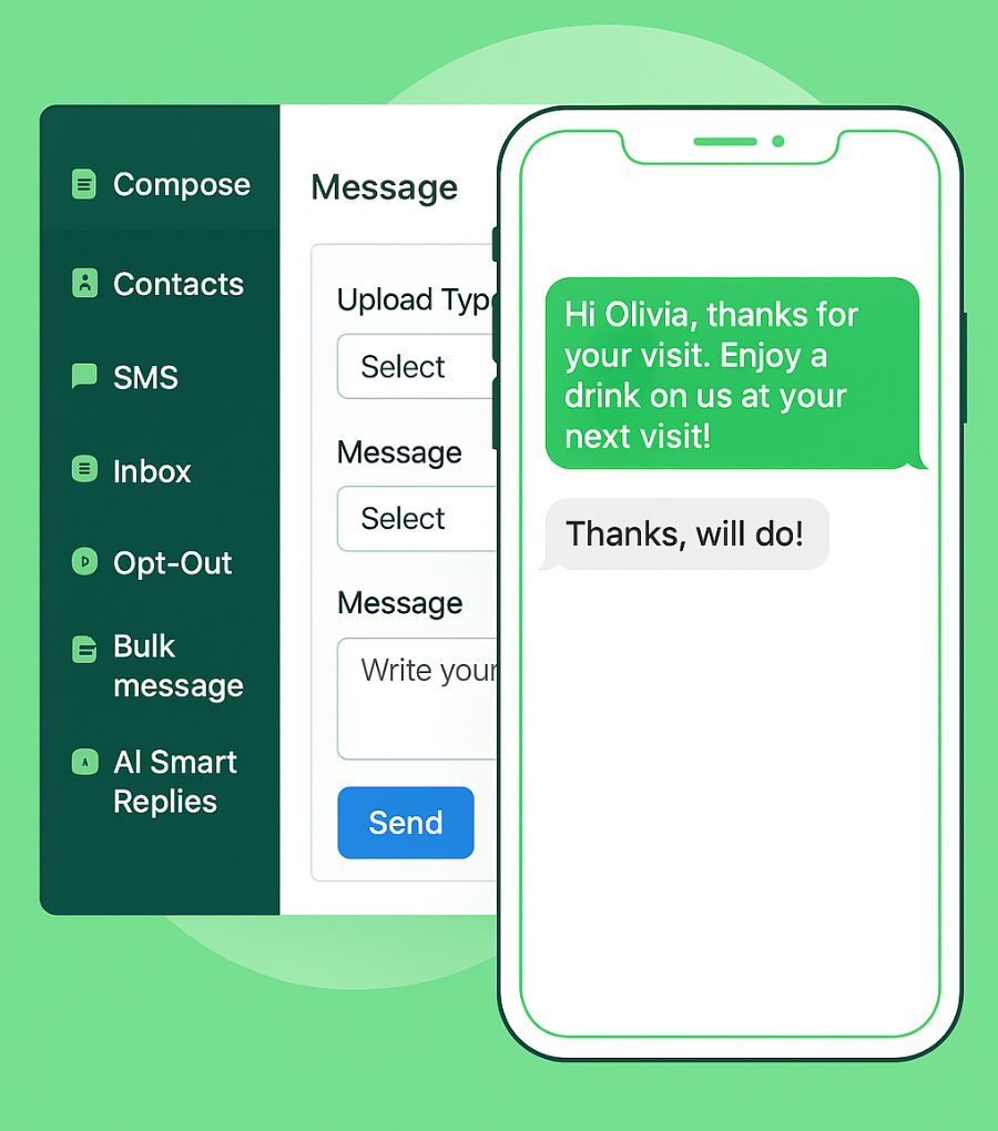 Turn first-time visitors into loyal regulars with automated texts that keep them coming back.